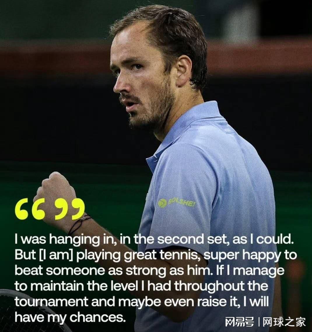 印第安维尔斯半决赛,俄罗斯名将梅德维杰夫以6-3 7-6(3)终结了阿尔卡拉斯本赛季的16连胜闯进决赛。然而,正当很多人对这位前世界第一抱有更高期待时,梅德韦杰夫却在赛后的新闻发布会上,给所有期待者们狠狠浇了一盆冷水 。